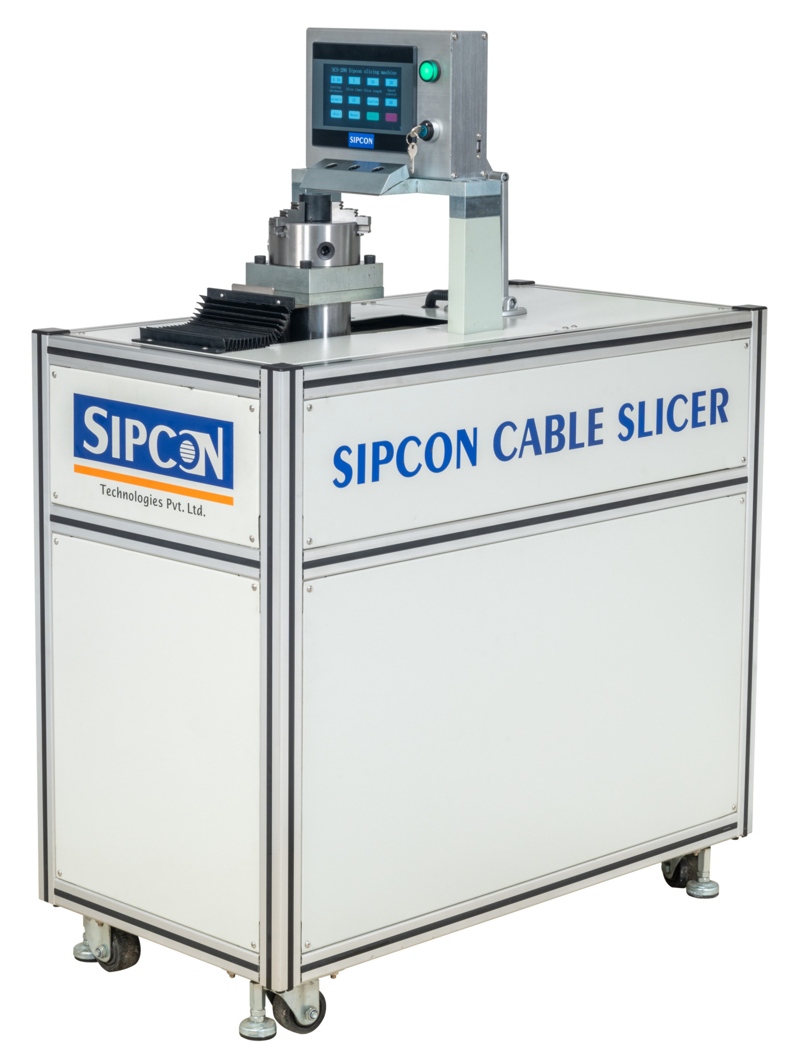 A fully automatic, PLC‑controlled Slicer & Stripper that combines two machines into one — touch‑screen programmable, equipped with 10 blades for fast, reliable, hands‑free cable processing.